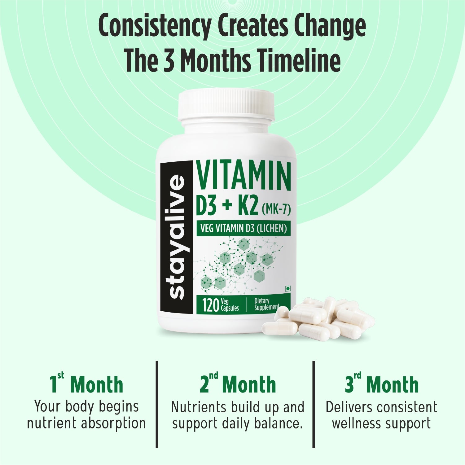Elevate your foundational health with Stayalive Vitamin D3 + K2 (MK-7) Capsules, a potent plant-based duo designed for optimal bone density and cardiovascular support. Featuring 600 IU (15 mcg) of Veg Vitamin D3 sourced from Lichen and 55 mcg of Vitamin K2 as MK-7, this synergistic blend ensures calcium is effectively absorbed and directed to your bones. This clean, non-GMO formula is the perfect daily addition for those seeking to maintain peak structural integrity and heart health.